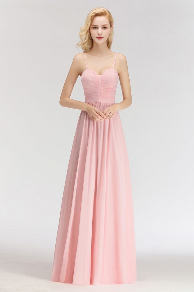A-line Long Sweetheart Spaghetti Sleeveless Bridesmaid Dress