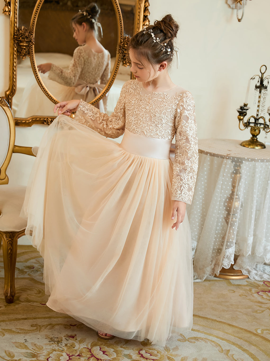 A-line Tulle Ankle-length Flower Girl Dress
