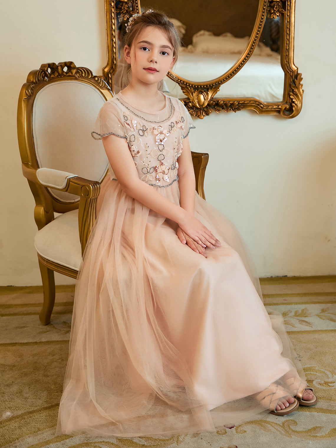 A-line Chiffon Floor-length Pink Flower Girl Dress