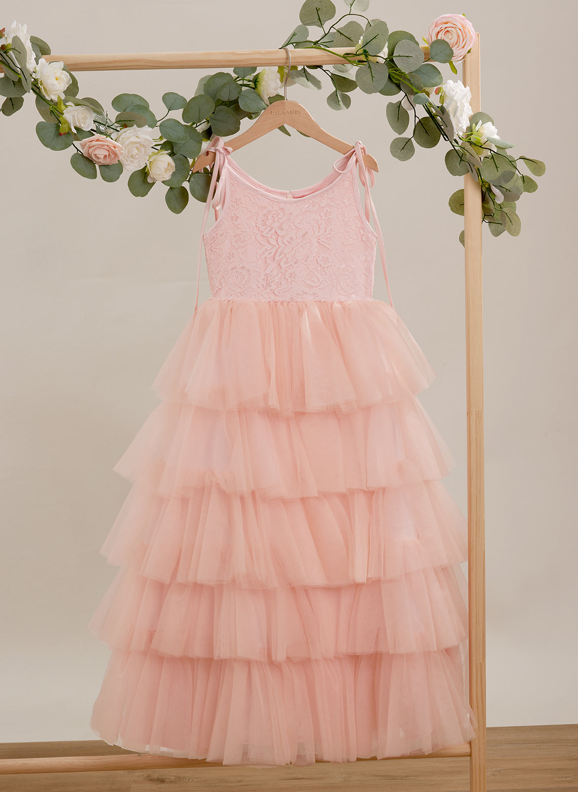 A-line Lace Tulle Floor-length Pink Dress (010220942)