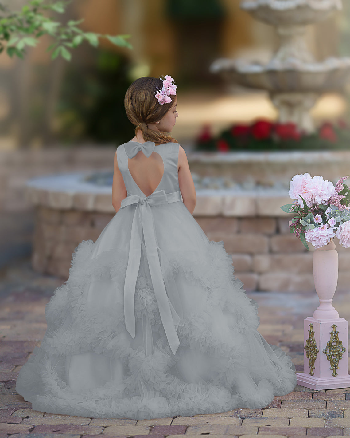 A-line Satin Tulle Floor-length Cascading Ruffles Flower Girl Dress