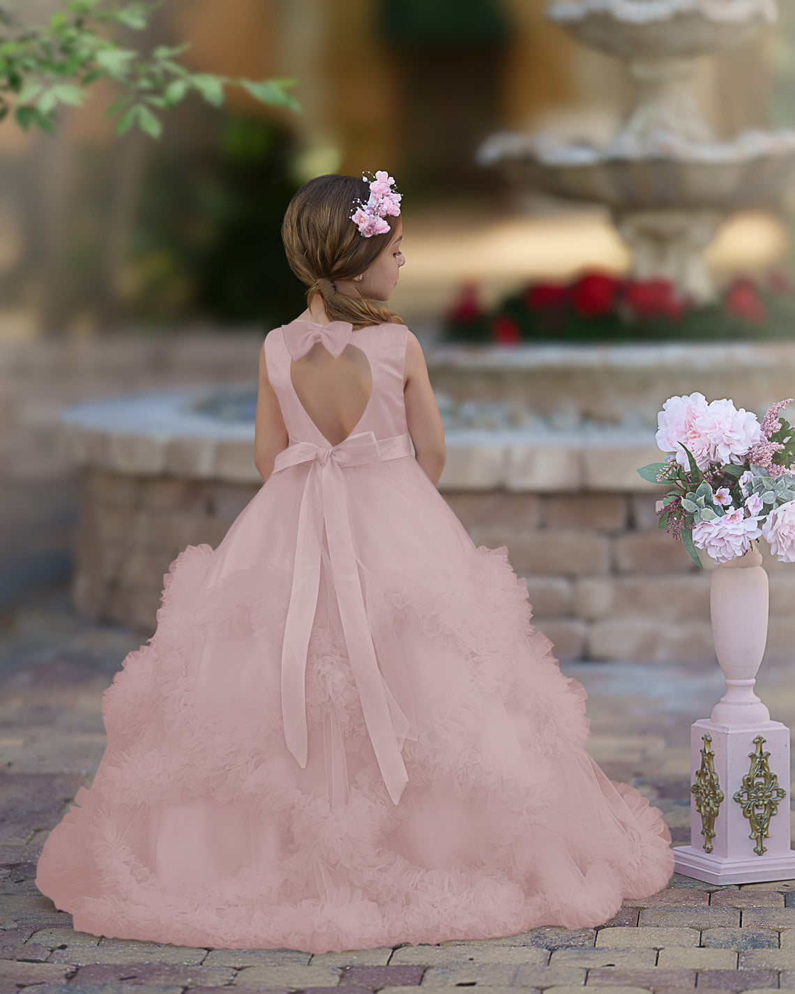 A-line Satin Tulle Floor-length Cascading Ruffles Flower Girl Dress