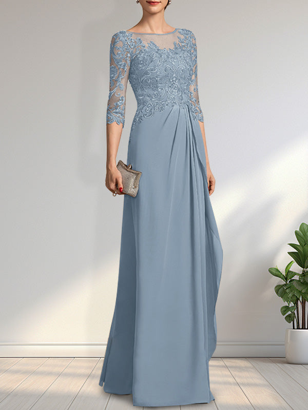 A-line Scoop Illusion Floor-Length Chiffon Lace Mother of the Bride Dress With Beading Sequins Cascading Ruffles
