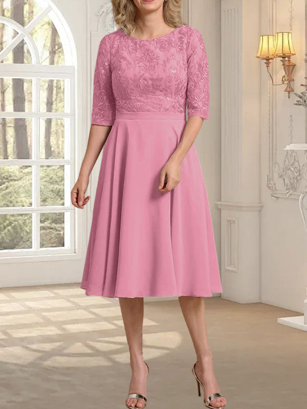 A-line Scoop Knee-Length Lace Chiffon Mother of the Bride Dress