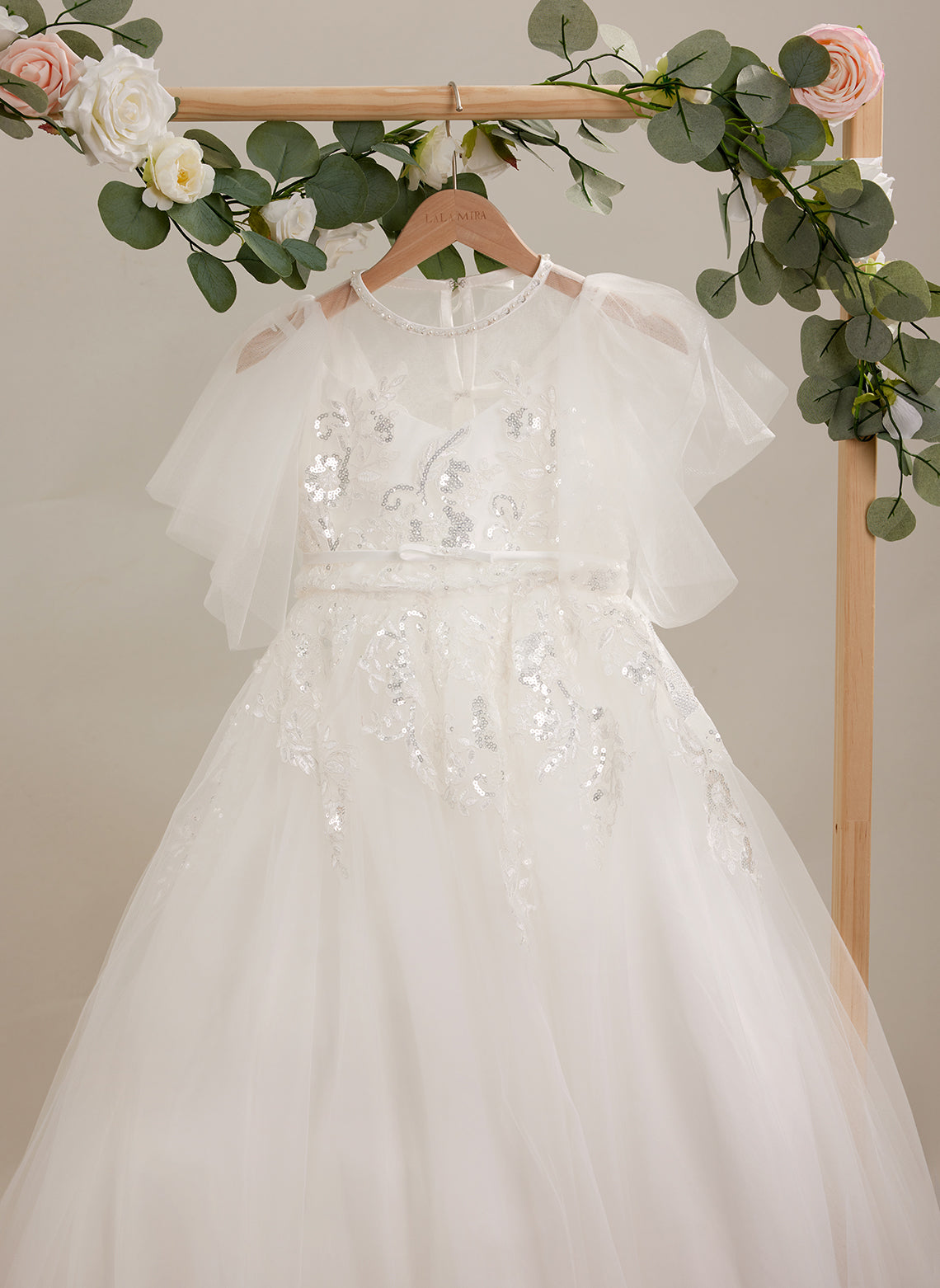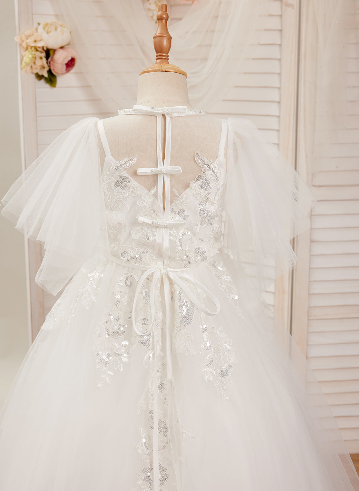 A-line Tulle Sweep Train Ivory First Communion Flower Girl Dress