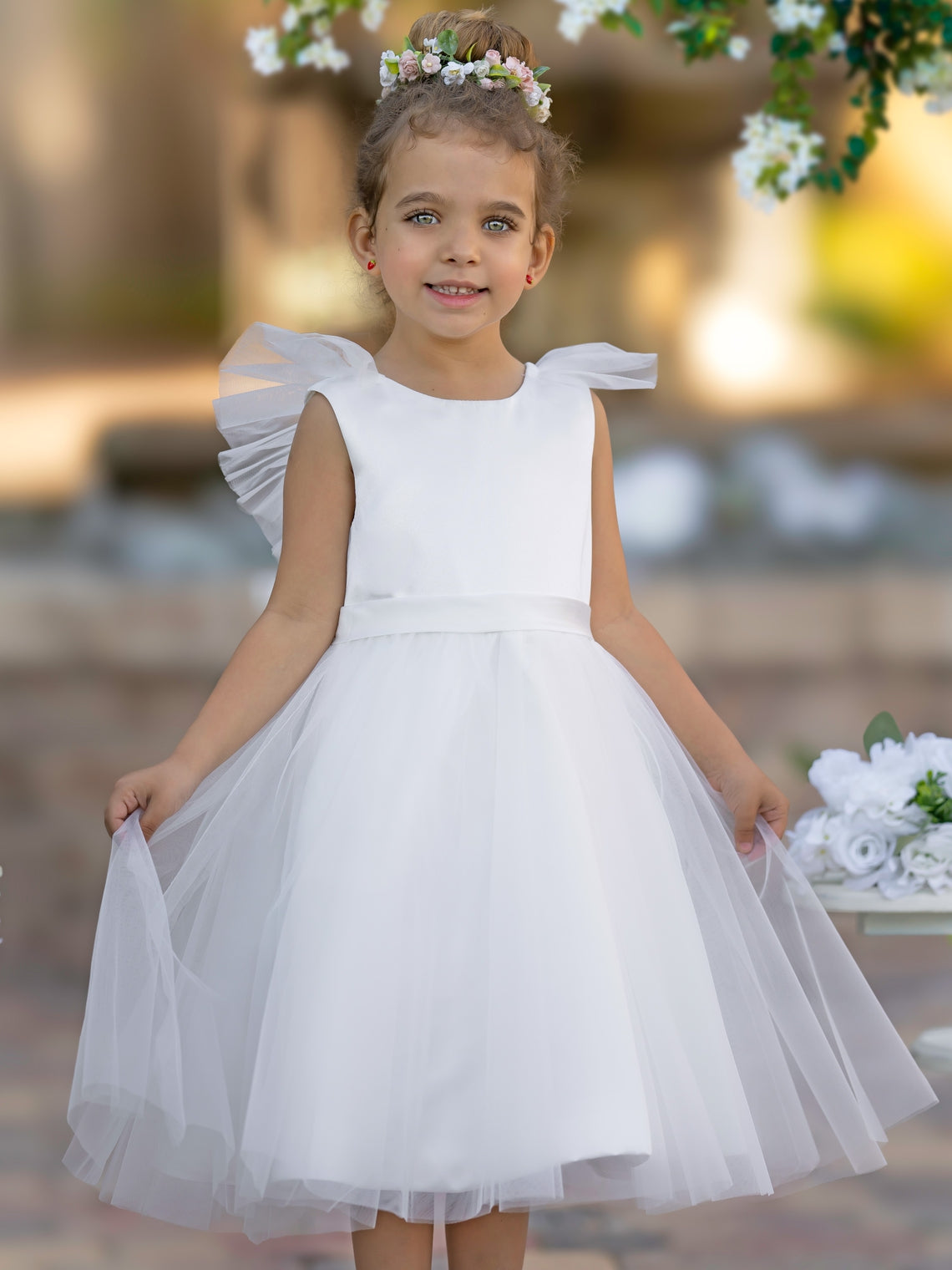 A-line Satin Tulle Knee-length Flower Girl Dress