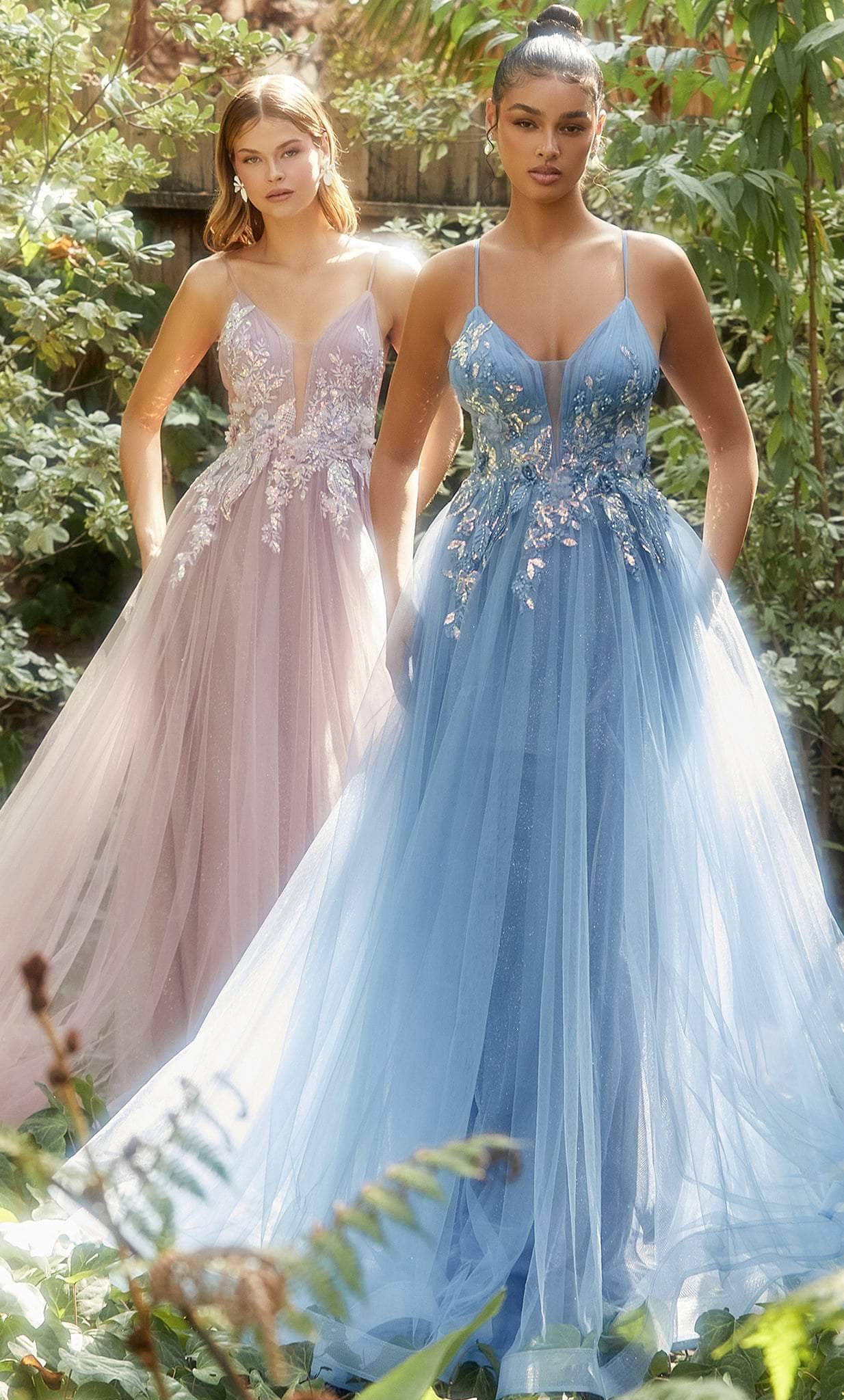 Exude a charm that is meant to mesmerize the elite crowd in this Andrea and Leo A1143 masterpiece. Beautiful iridescent sequins and beadwork adorning the bodice and top skirt will fascinate all in sight. It has sheer inset detailing on the plunging sweetheart neckline. and spaghetti straps that lead to the plunging v-back. The gathered tulle skirt parades a full length A-line silhouette and makes a dramatic exit in a sweeping train. This Andrea and Leo A1143 style will absolutely make you feel special! Models are wearing the Blue Jay and Mauve colors.