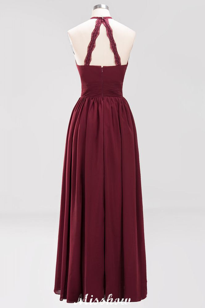 Appliques Halter Sleeveless Floor-Length Bridesmaid Dresses with Ruffles A-line Chiffon Evening Maxi Dress