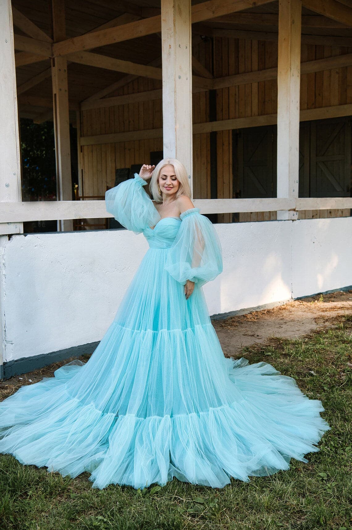 Long sleeve off the shoulder maternity dress for photography is perfect for pregnant ladies who want to look stylish and elegant. Feel beautiful and confident on your special day with this stunning sweetheart neck maternity sheer gown a line maternity dress for wedding. The Puffy Sleeves add a touch of elegance and charm. making you stand out as the bride or guest.