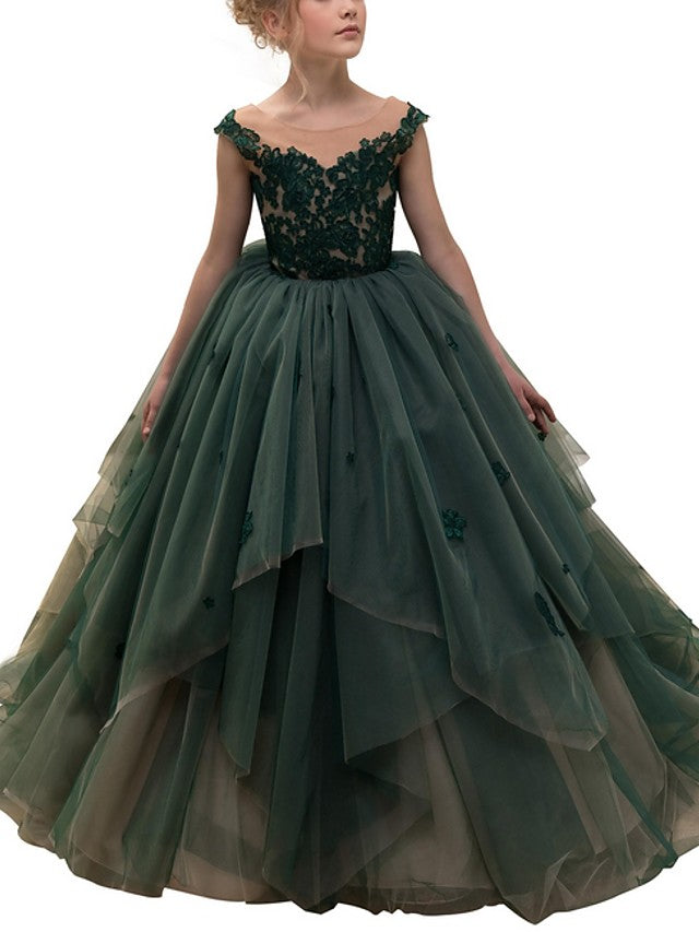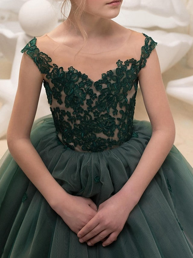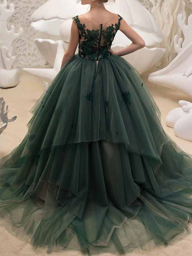 Ball Gown Lace Sleeveless Jewel Neck Pageant Flower Girl Dresses