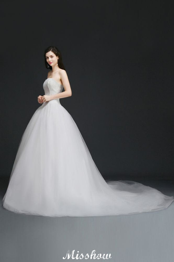 Ball Gown Lace Sweetheart Tulle Wedding Dress