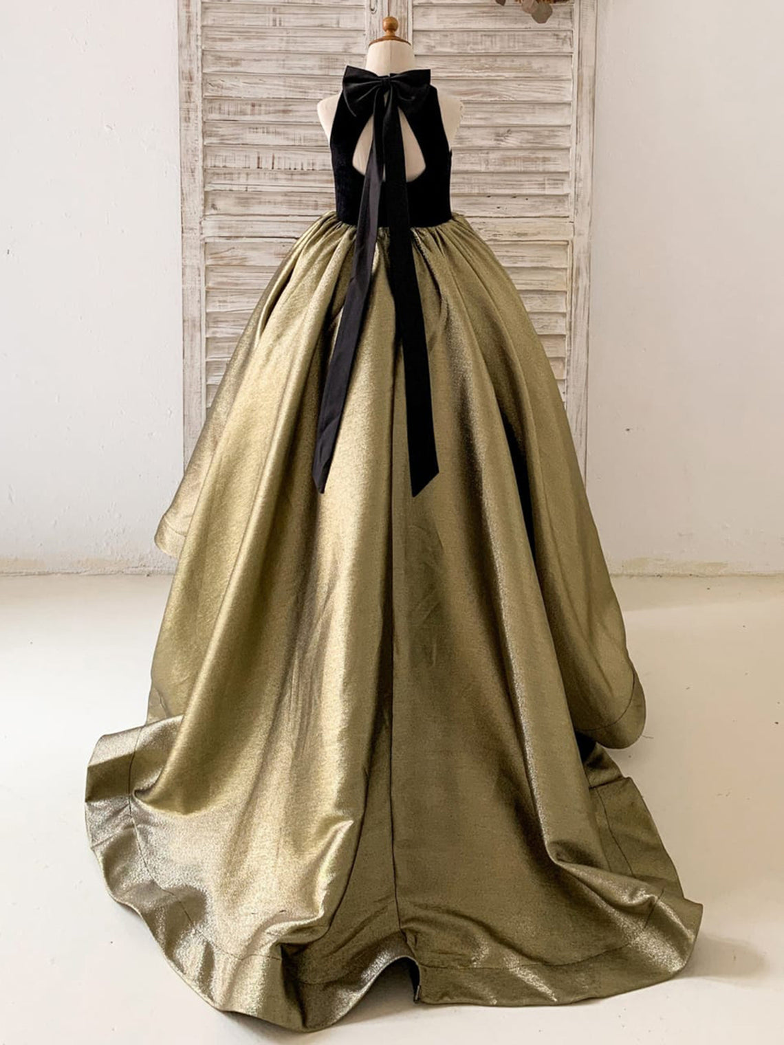 Ball-Gown/Princess Jacquard Velvet Sweep Train Black Dress (2003227667)