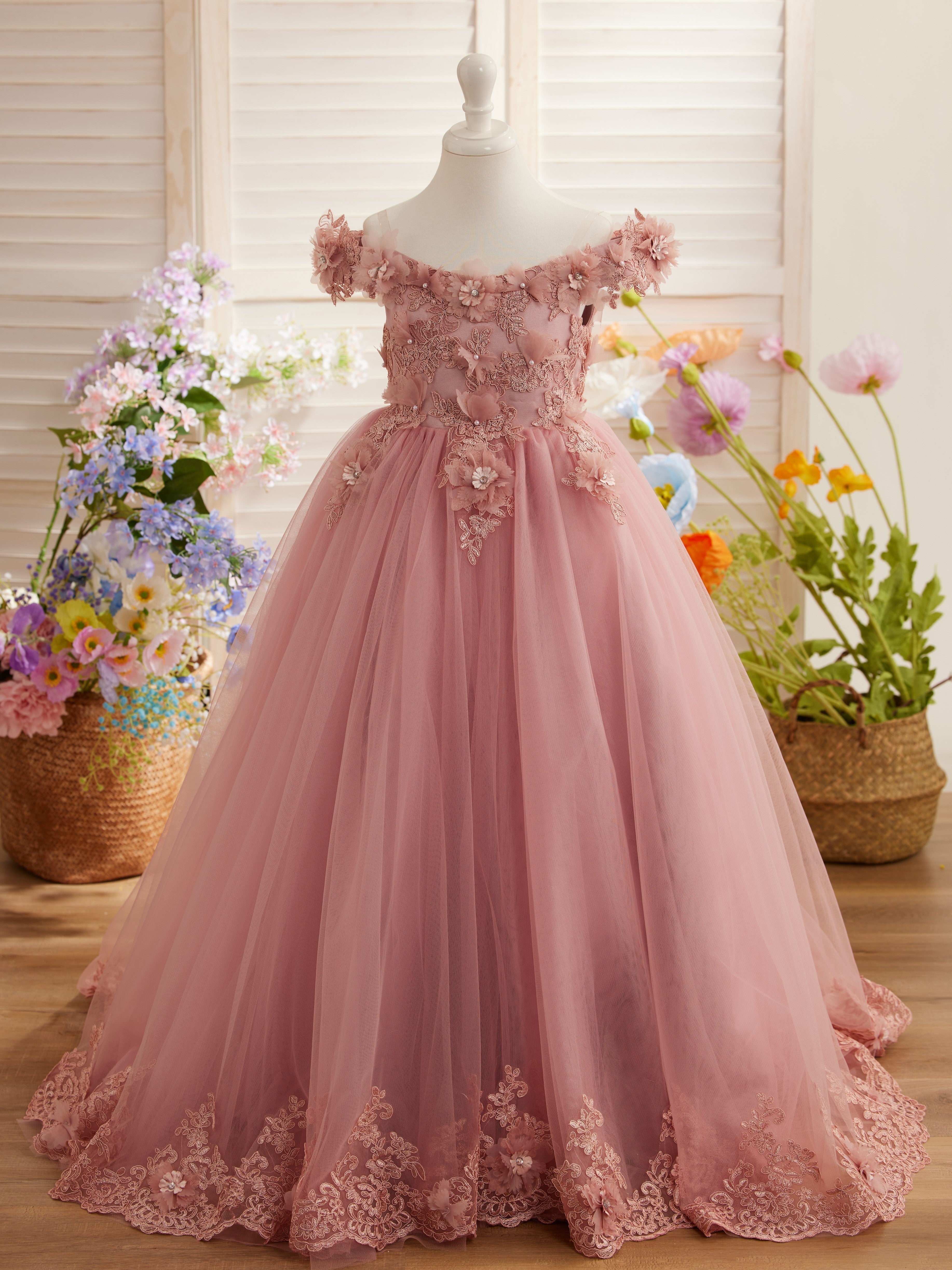 Ball-Gown/Princess Lace Sweep Train Pink Birthday Dress
