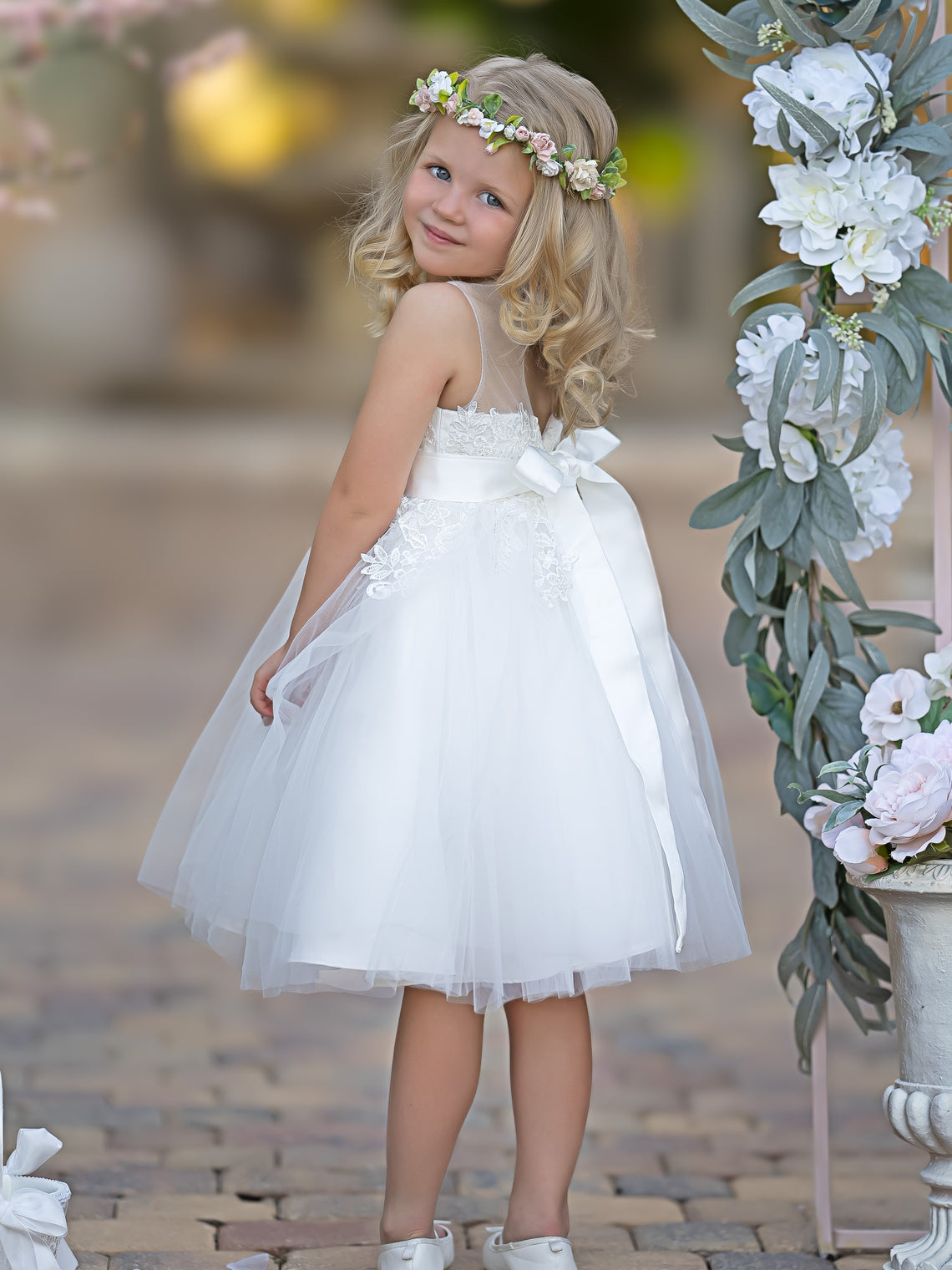 Lace Tulle Knee-length First Communion Flower Girl Dress