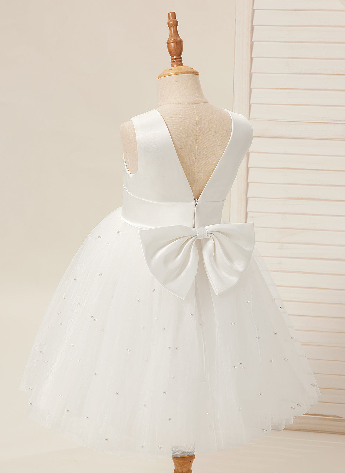 Ball-Gown/Princess Satin Tulle Knee-length Flower Girl Dress