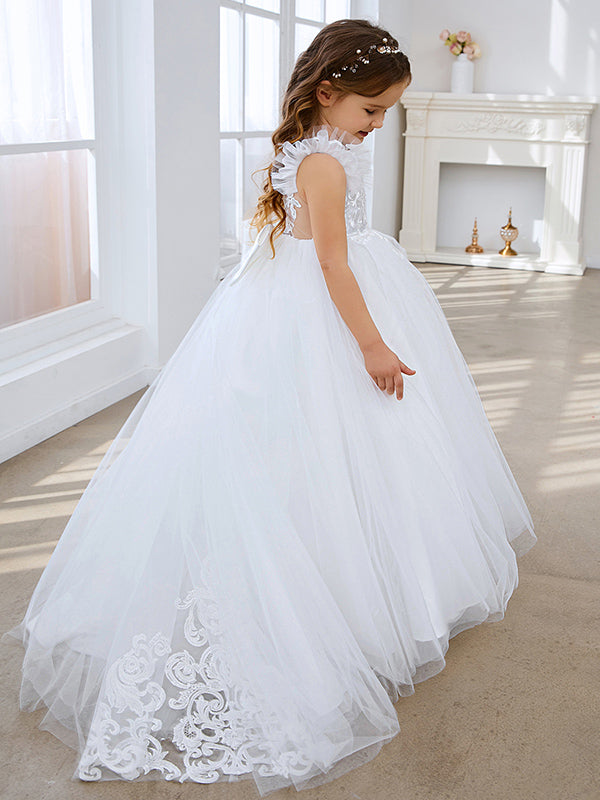 Ivory Princess Ball Gown with Lace Appliques and Tulle Court Train for Girls