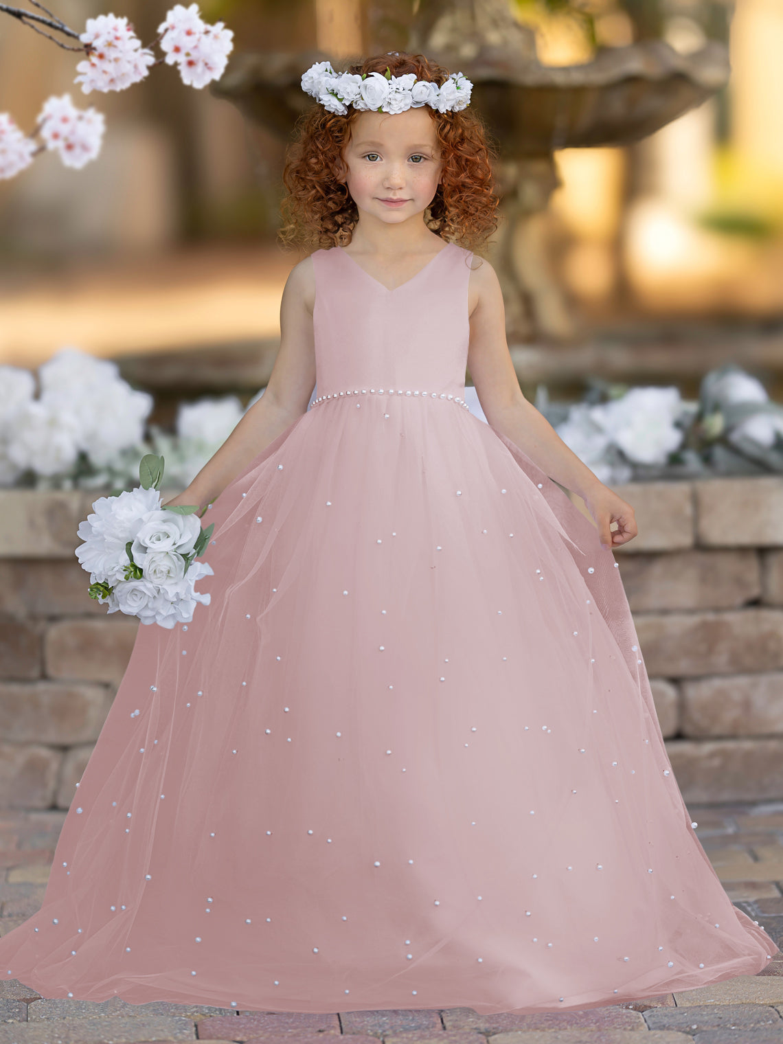 Elegant Princess Ball Gown Satin & Tulle Flower Girl Dress
