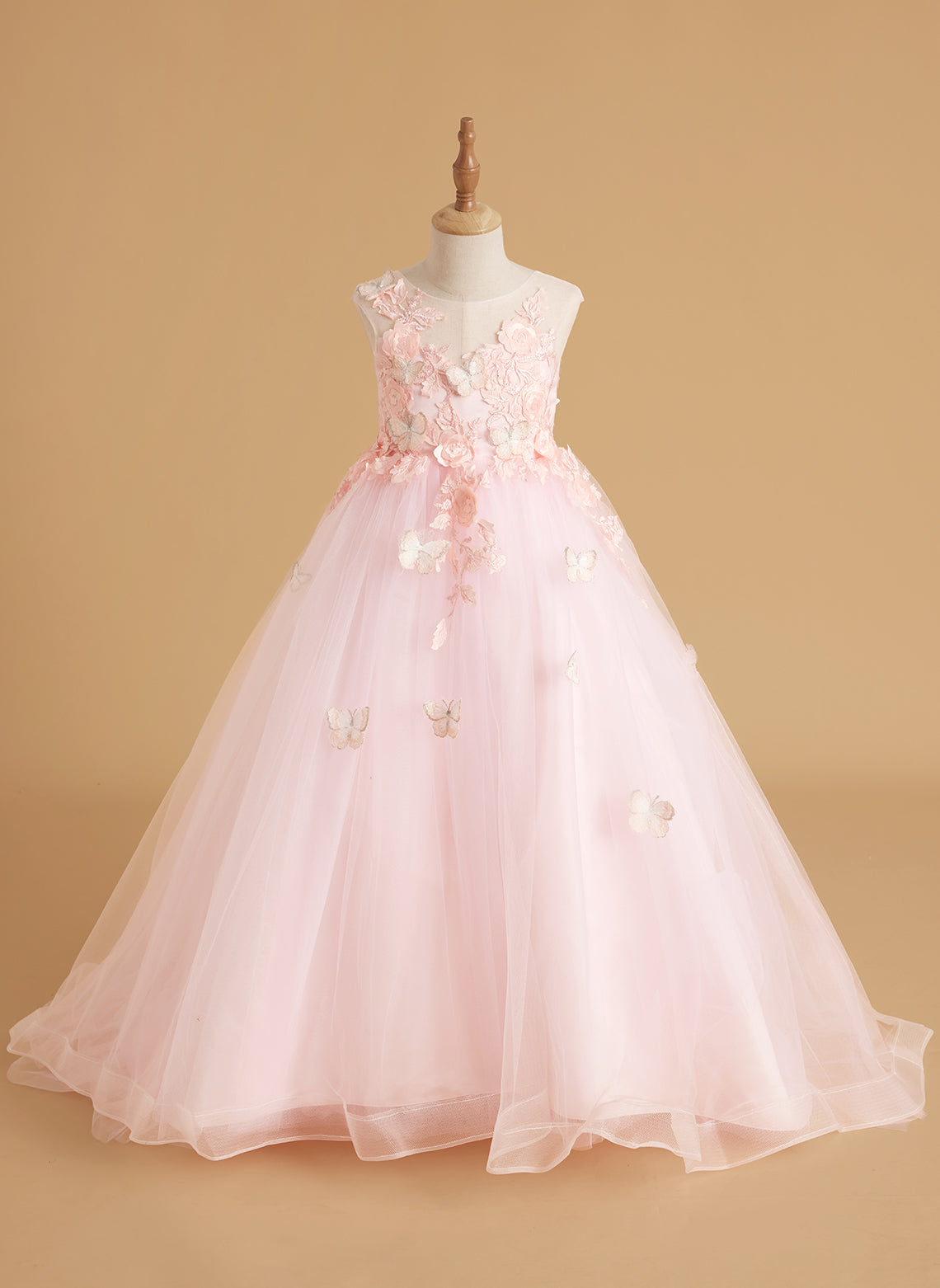 Serenity Princess Ball Gown with Lace Appliques and Butterfly Embellishments