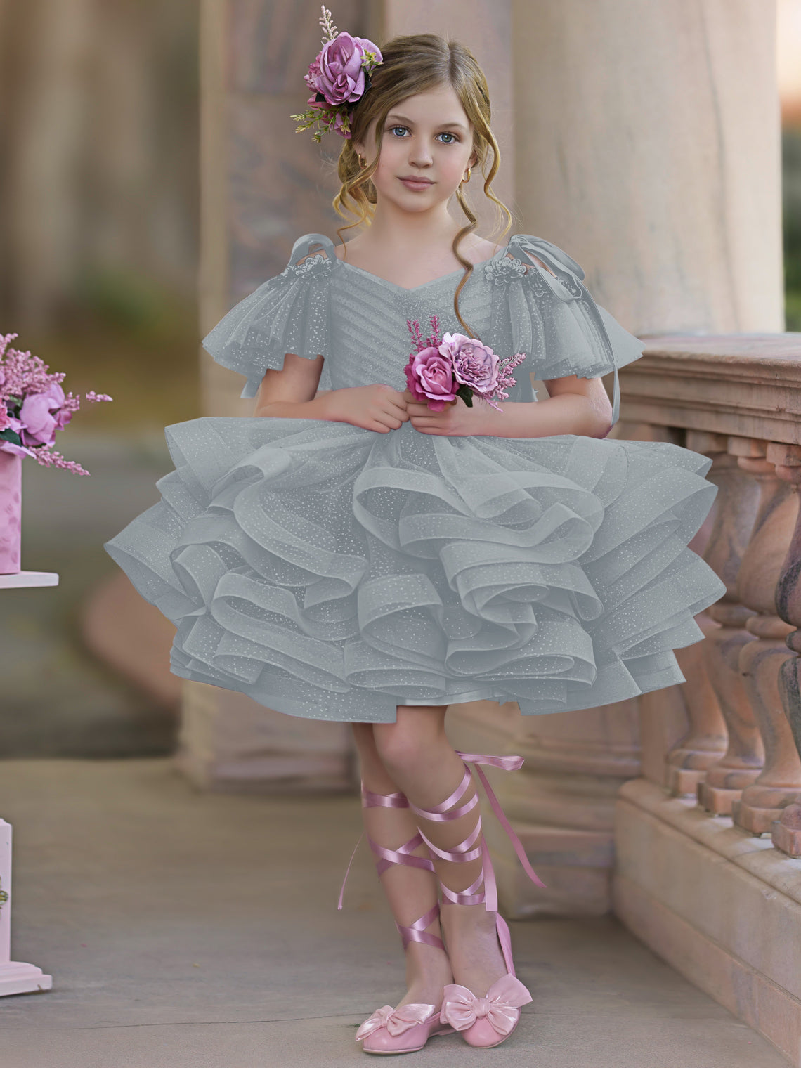 Ball-Gown/Princess Tulle Knee-length Birthday Flower Girl Dress