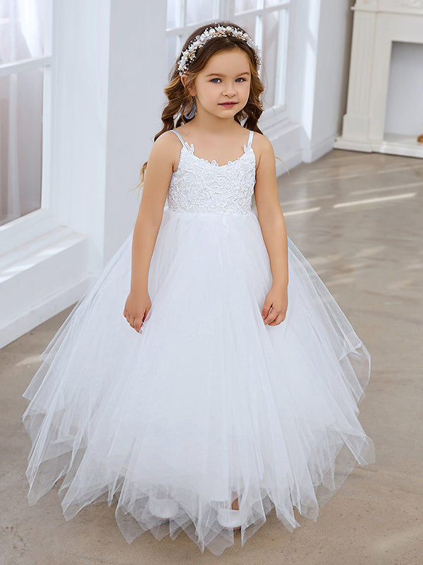 Ball-Gown/Princess Lace Tulle Floor-length White Dress (010145213)