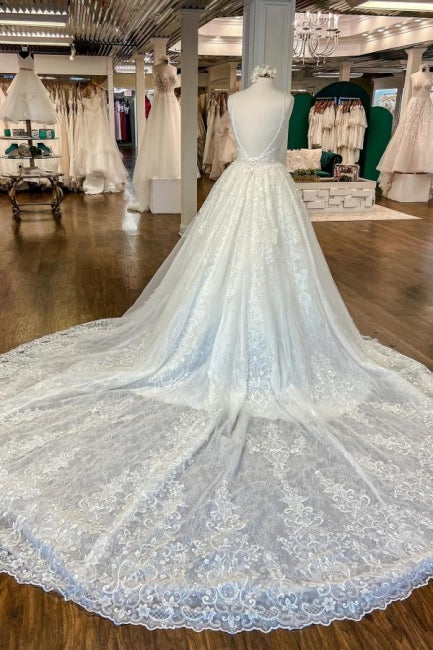 Beautiful A-Line Spaghetti Straps Appliques Wedding Dresses With Lace