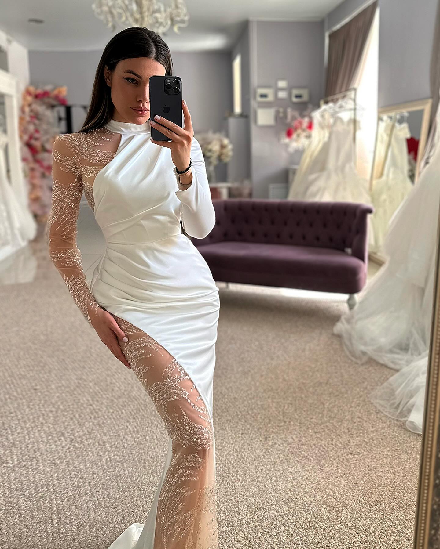 Indulge in elegance with our Beautiful Column Satin Lace Halter Long Sleeve Wedding Dress. This dress features stunning appliqués. a romantic halter neck. and delicate lace. Perfect for any bride wanting a sophisticated and stylish look. Explore its timeless and luxurious design today.