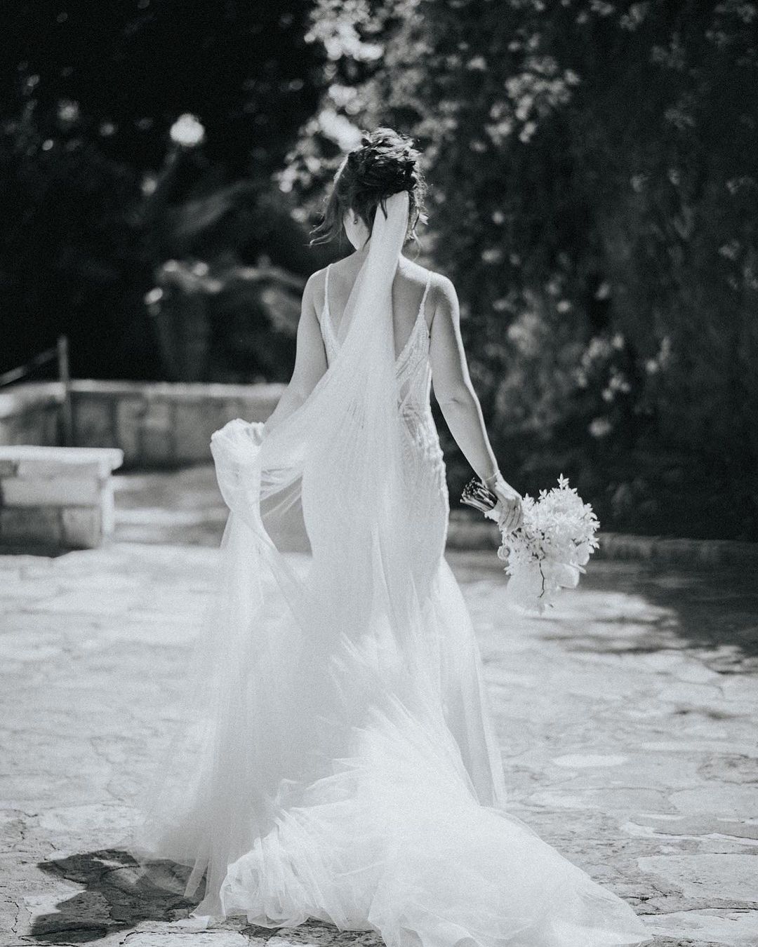 This stunning wedding dress features a beautiful mermaid silhouette. delicate spaghetti straps. and an elegant V-neckline. The intricate lace detailing adds a touch of romance. while the sleeveless and backless design exudes a sense of modern sophistication. Perfect for any bride looking for a timeless yet contemporary look on her special day.