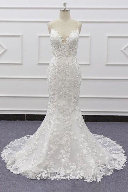 Best Spaghetti Strap Appliques Mermaid Elegant Wedding Dresses