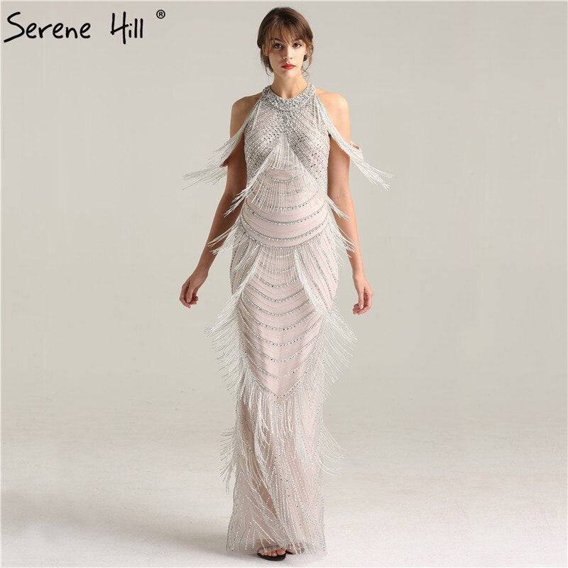 Black Halter Backless Sexy Luxury Evening Dresses 2025 Tassel Beading Sleeveless Mermaid Formal Dress LA6229