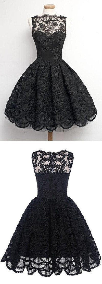 Lace A-Line Scalloped-Edge Vintage Homecoming Dress, Short Prom Dress