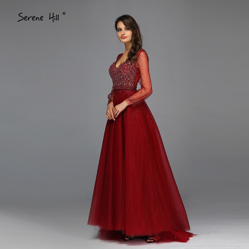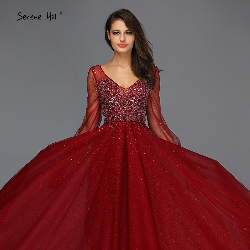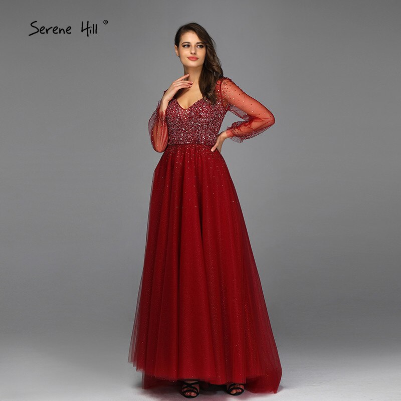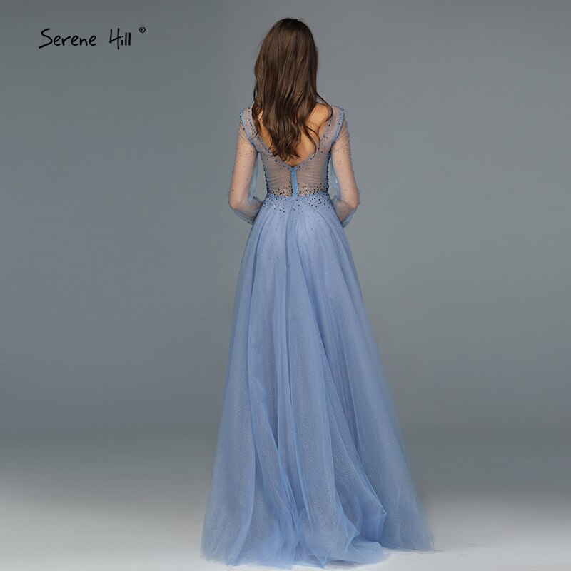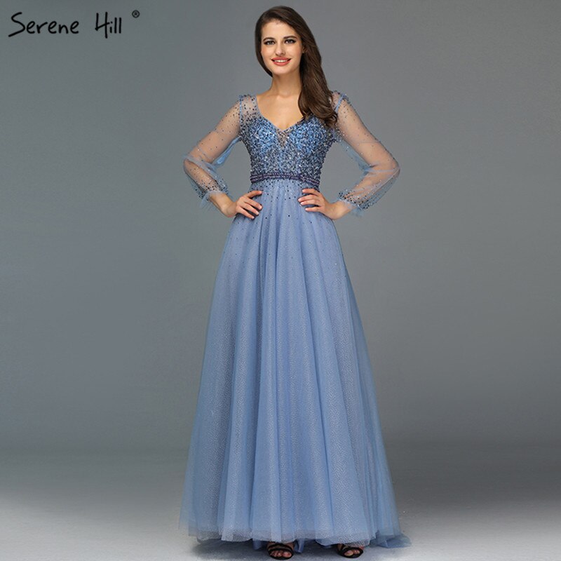 Blau Langen Ärmeln A-Line Abend Dressese Design 2025 V-ausschnitt Perlen Kristall Abendkleider Lange LA70143