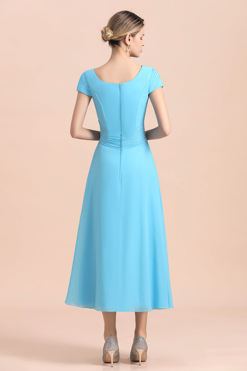 Blue Short Sleeves Chiffon Mother of the Bride Dress Tea-Length Online