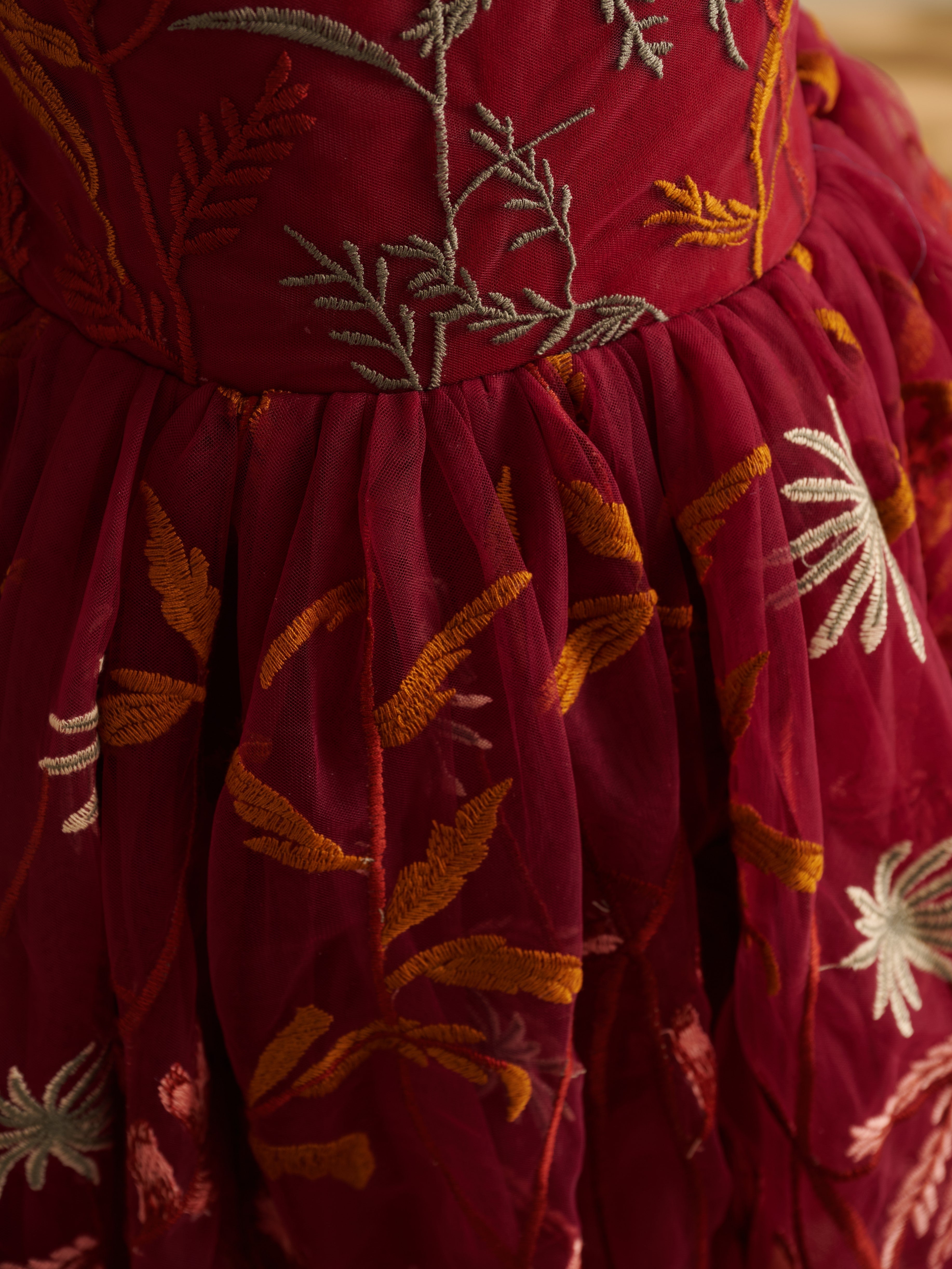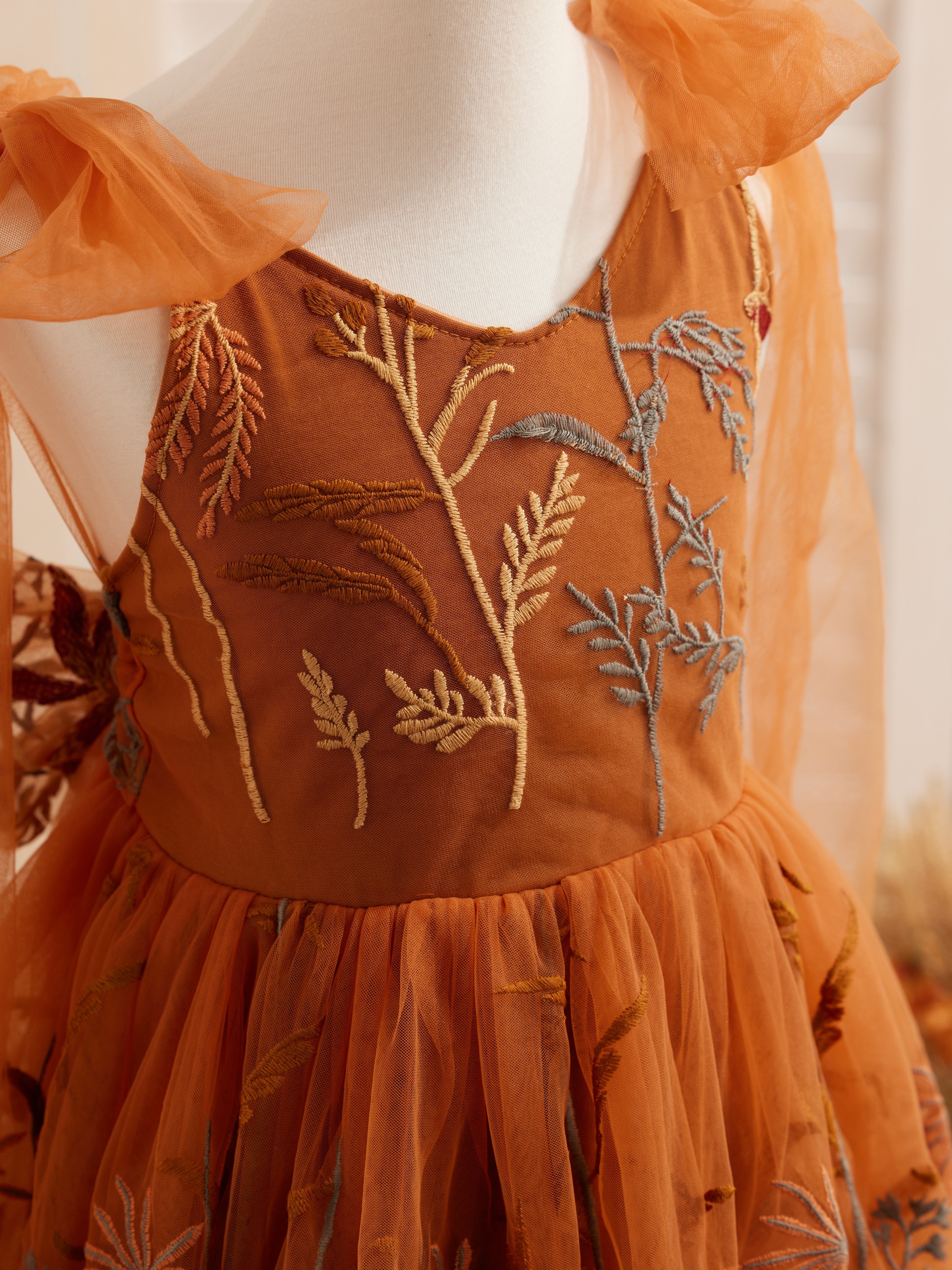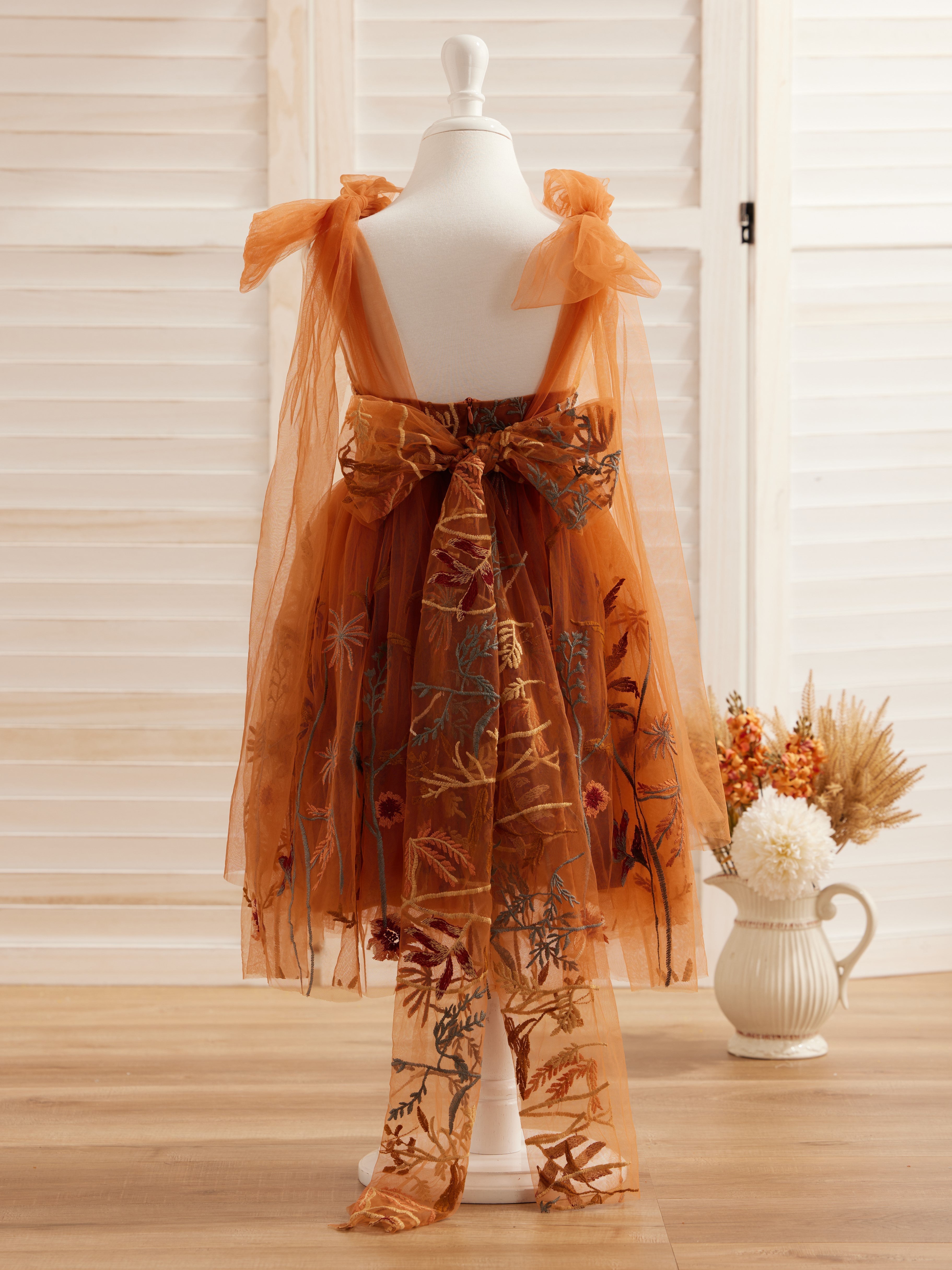 Burnt Orange Lace Tulle Embroidered Toddler Knee Length Flower Girl Dress