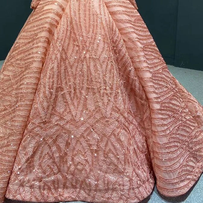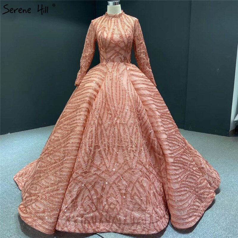 Clear Water Blue High Collar Evening Dresses 2025 Short Sleeve Lace Sequined Bridal Gowns Design Real Photo HM66981