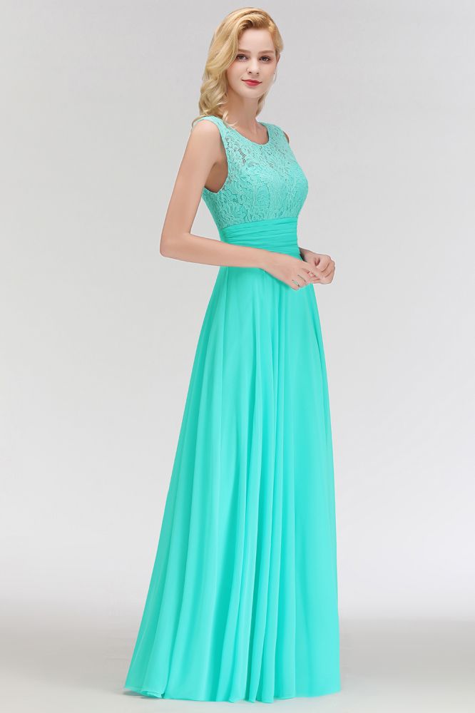 Crew Neck Lace Top Sleeveless Chiffon Bridesmaid Dress Aline Formal Dress