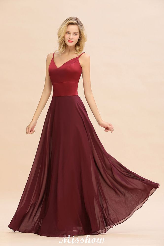 Cross Backless Floor Length Satin Evening Gowns Burgundy Bridesmaid Dress