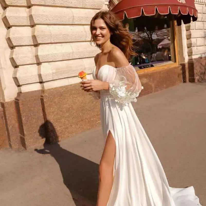 Custom Made Boho Wedding Dress Chiffon Lace Vintaging Gowns Split Side Sexy Beach Bridal Dressee Wedds Cheap Mariage