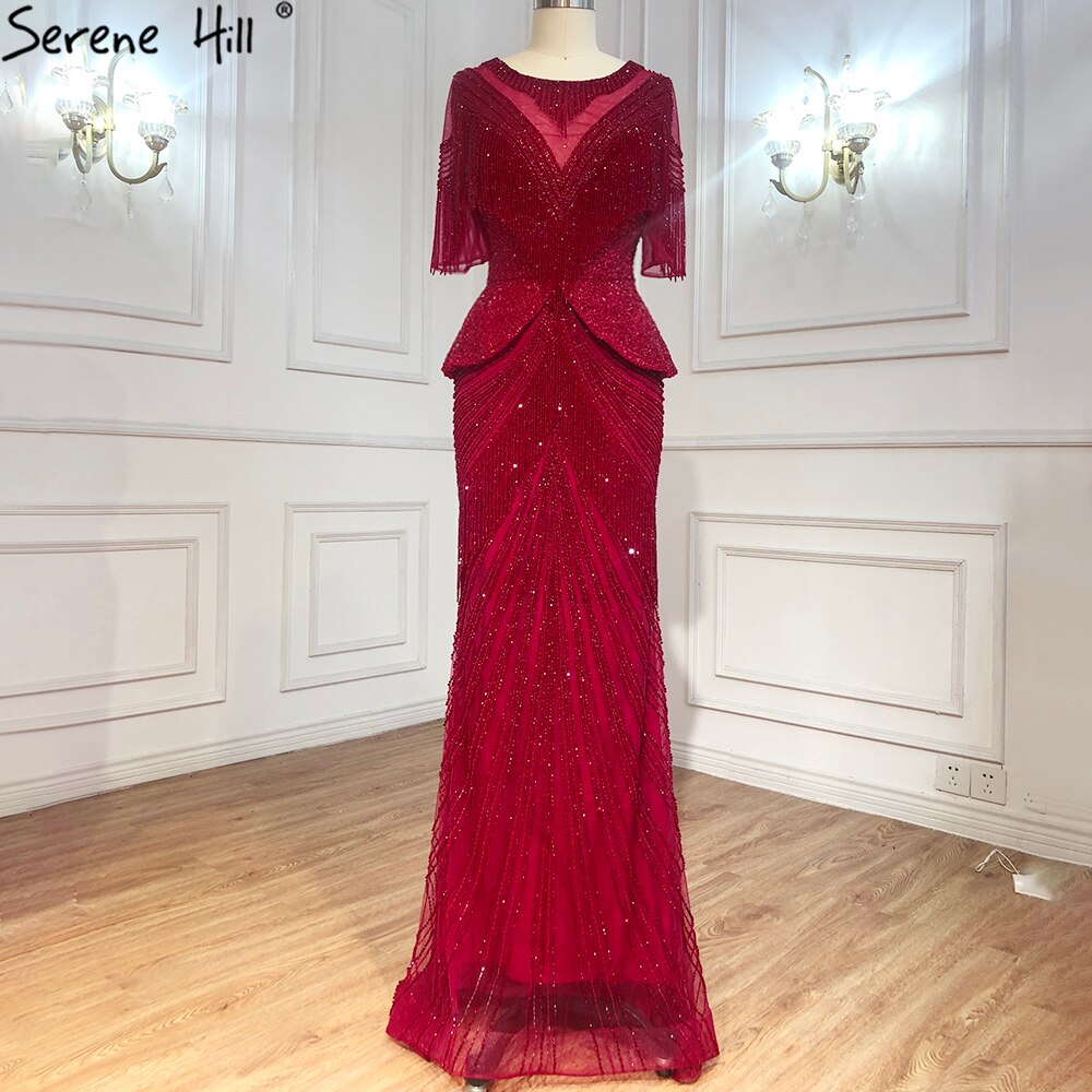 Dubai Beige Tassel Beading Mermaid Evening Dresses Design 2025 Half Sleeves Luxury Sexy Formal Dress LA70342