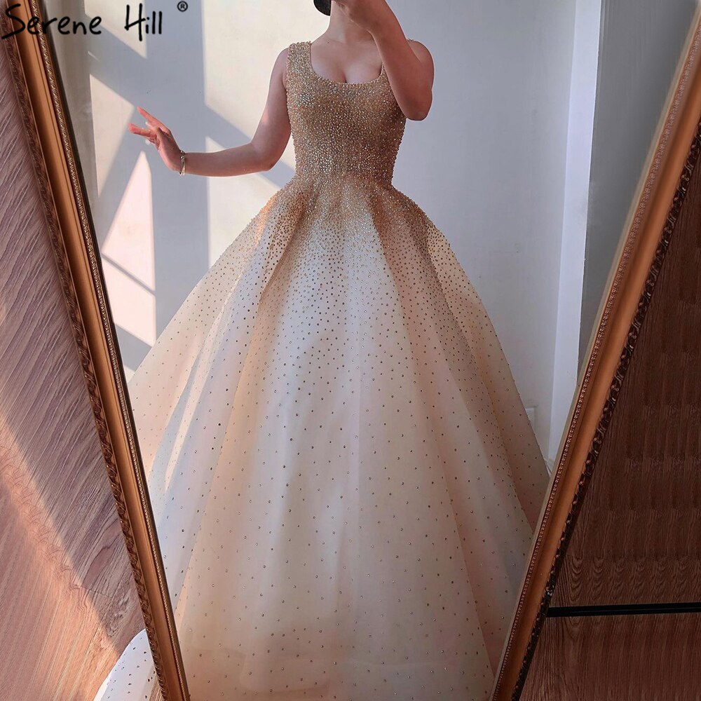 Dubai Champange Full Crystal A-Line Evening Dresses Design Sleeveless Luxury Sexy Evening Gowns LA70232