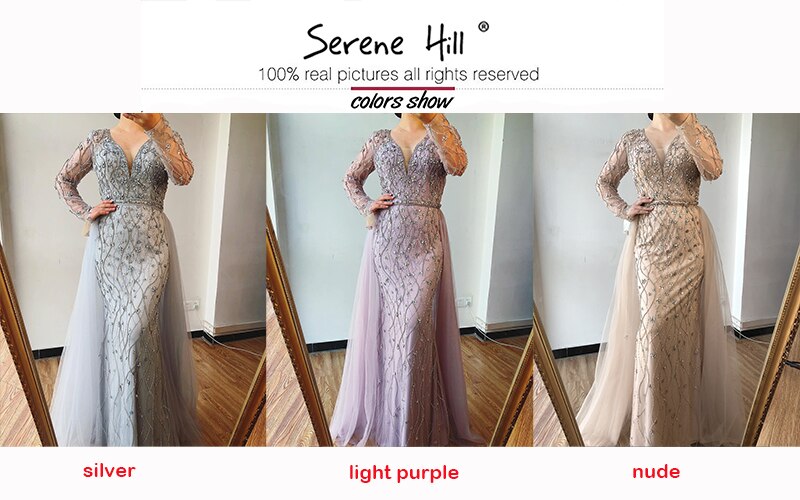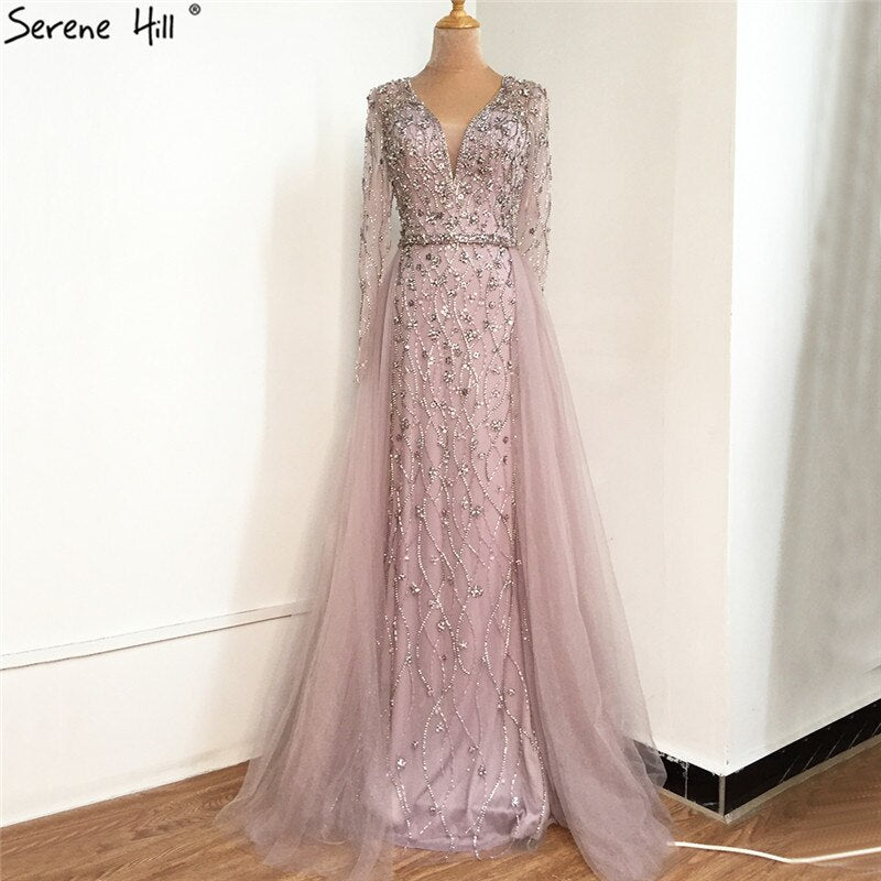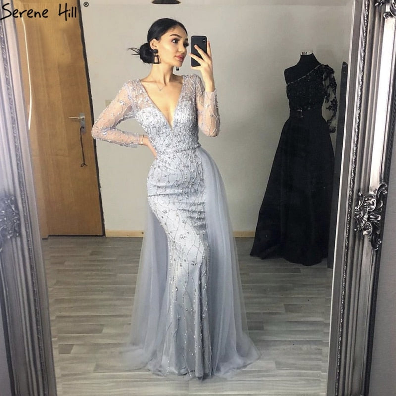 Dubai Luxury Grey With DetachableTrain Evening Dresses 2025 Long Diamond Mermaid Beading Formal Dress LA70341