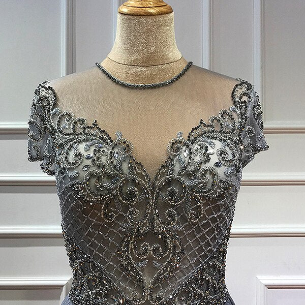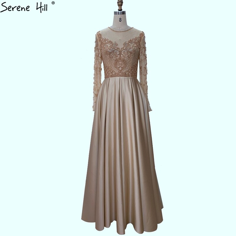 Dubai Mulim Gold A-line Long Satin Crystal Beading Evening Dresses 2025 Gowns For Woman Formal Dress LA70550