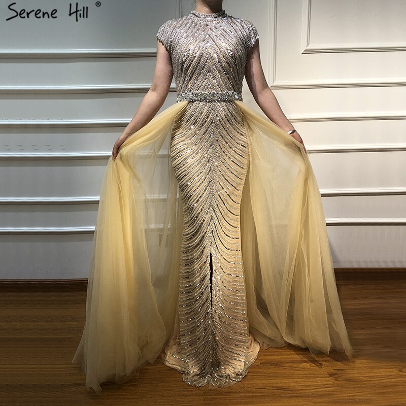 Dubai O-Neck Cap Sleeve Beading Evening Dresses 2025 Nude Sexy Mermaid Formal Dress Plus Size LA60777