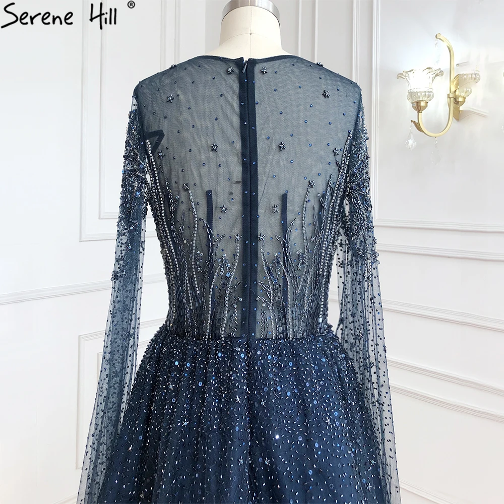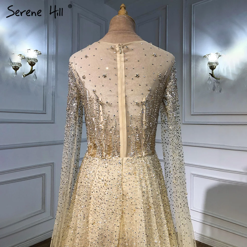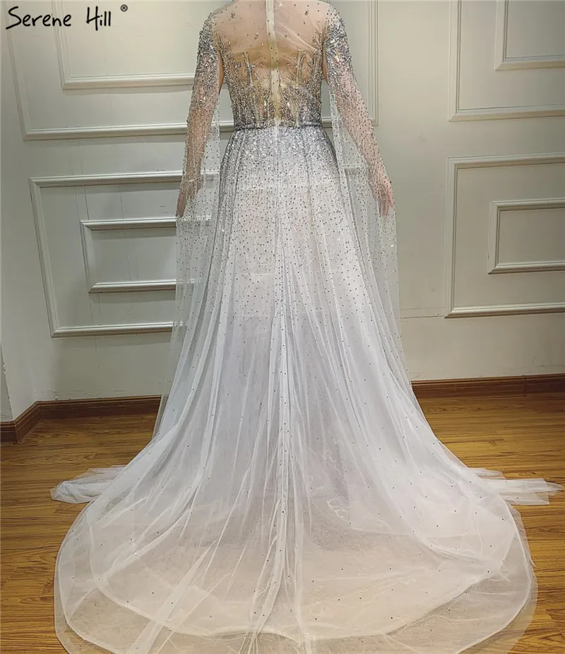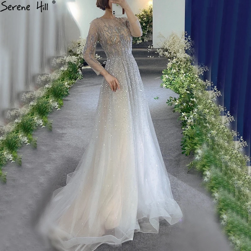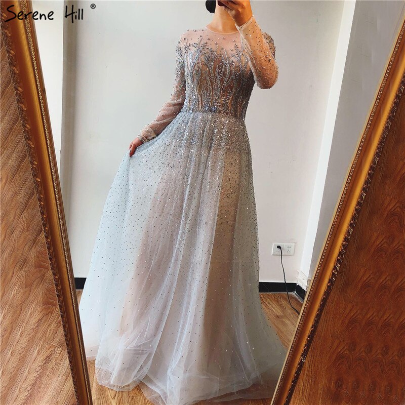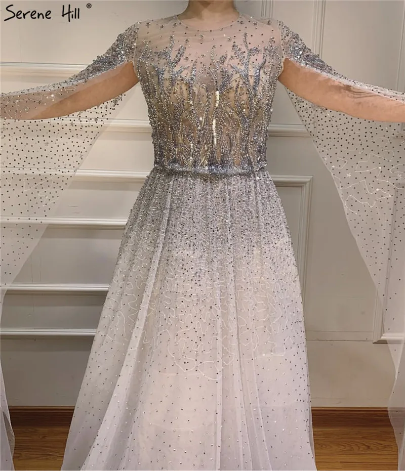 Dubai Silver Grey Long Sleeves Evening Dresses 2025 Luxury A-Line Sexy Fromal Dress Design LA60869