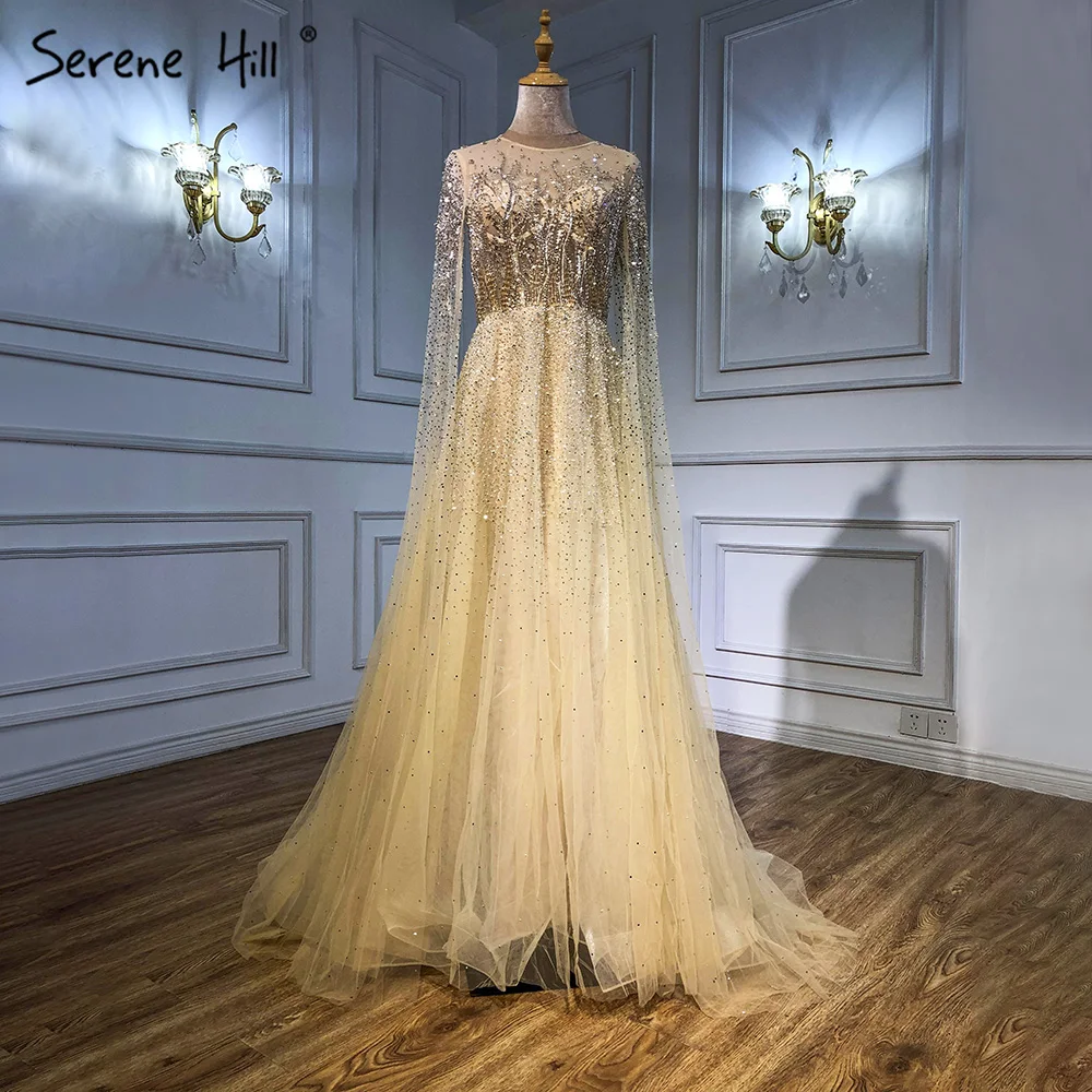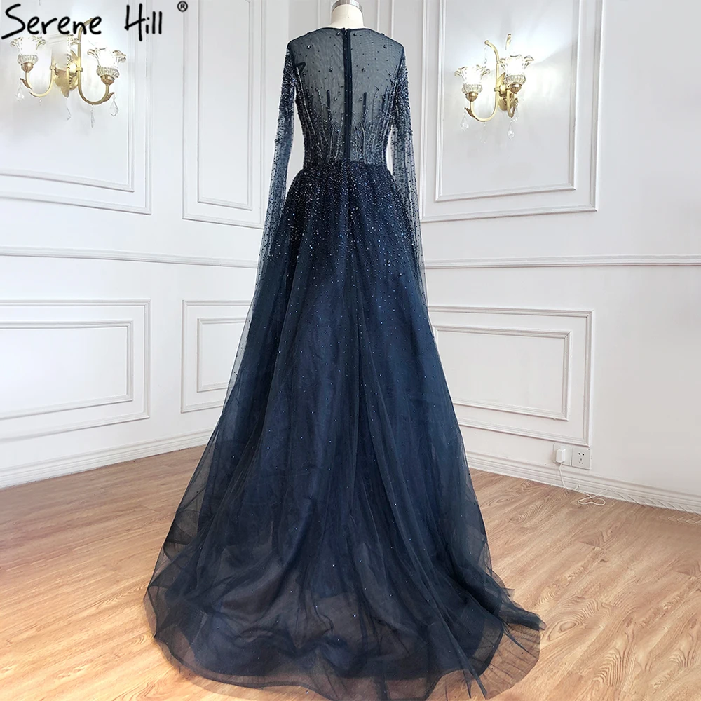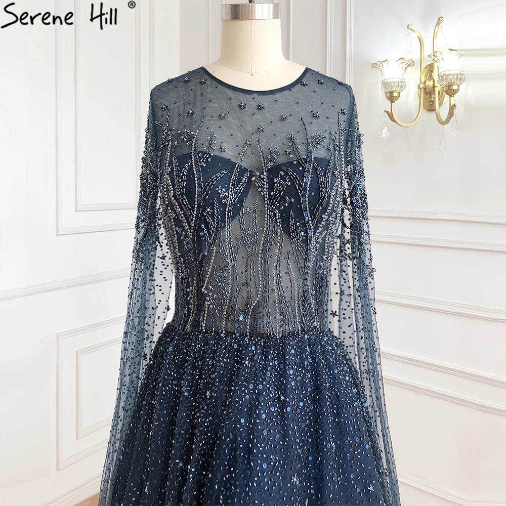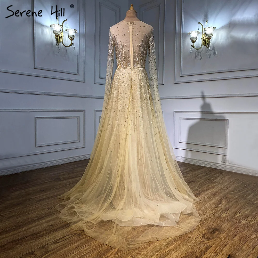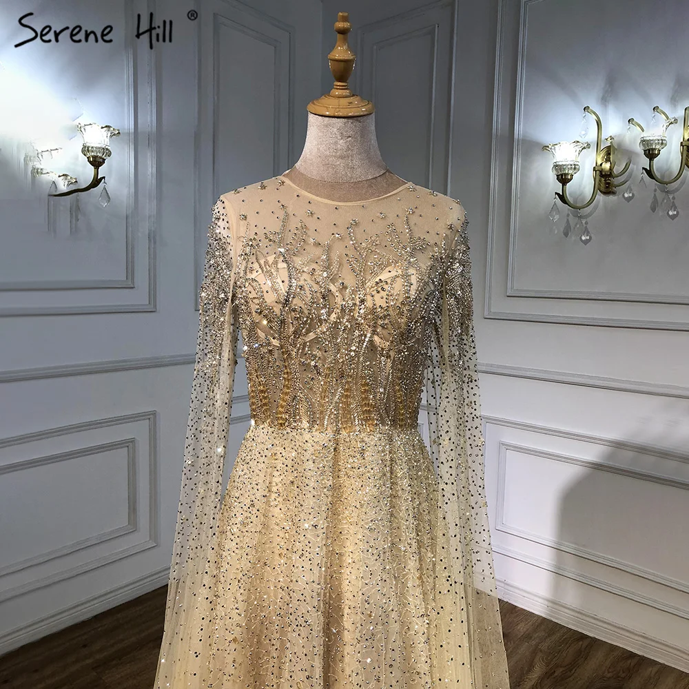 Dubai Silver Grey Long Sleeves Evening Dresses 2025 Luxury A-Line Sexy Fromal Dress Design LA60869
