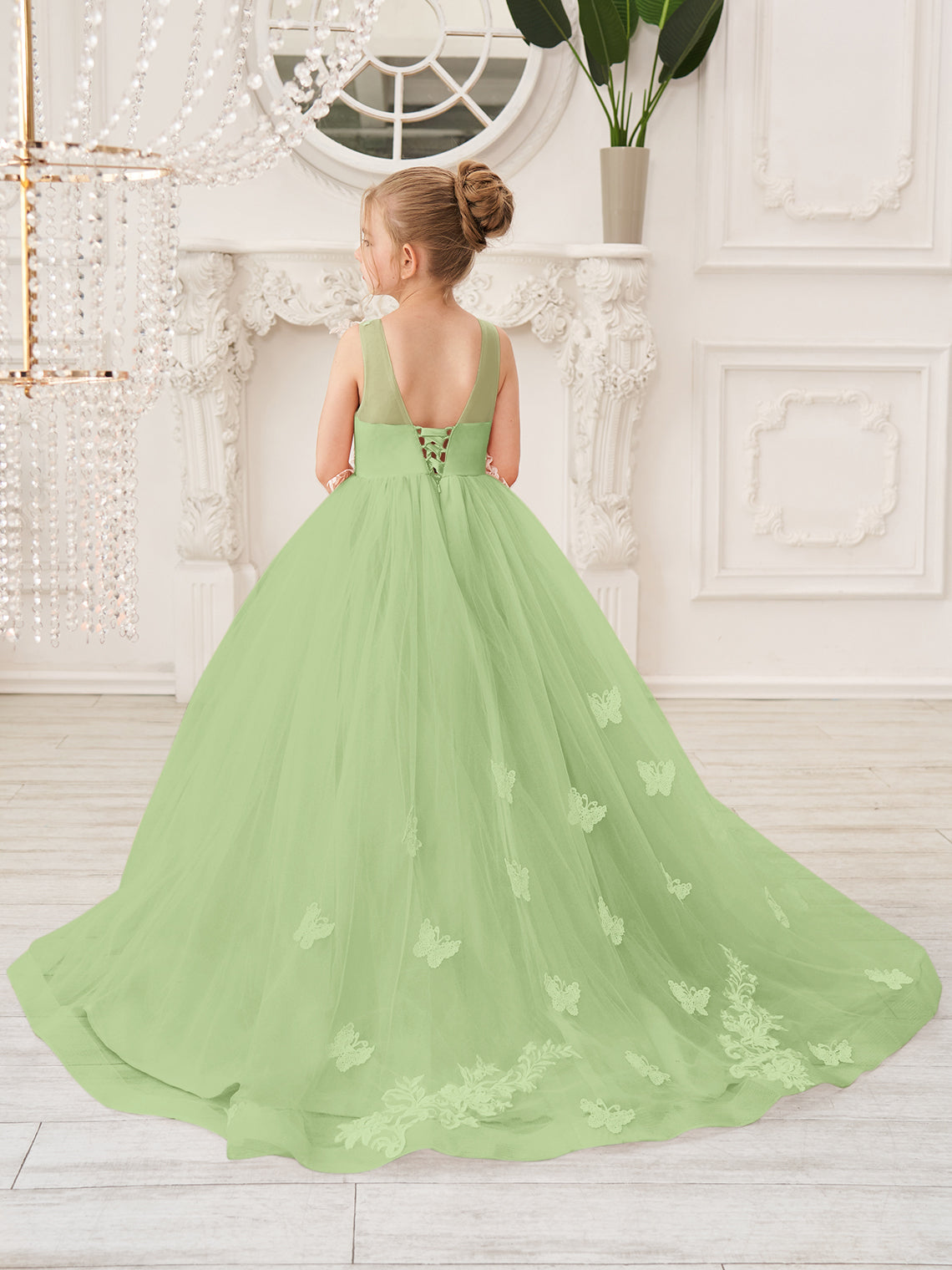 Elegant A-Line Princess Sleeveless Tulle Flower Girl Dress