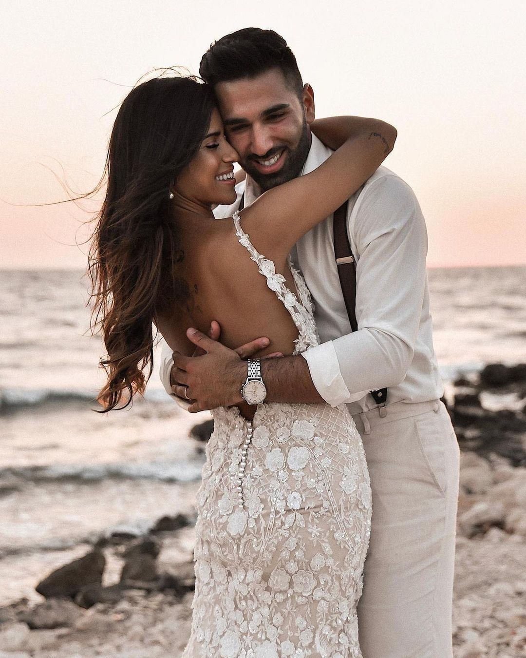 Elegant Long Mermaid V-neck Floral Lace Backless Wedding Dress