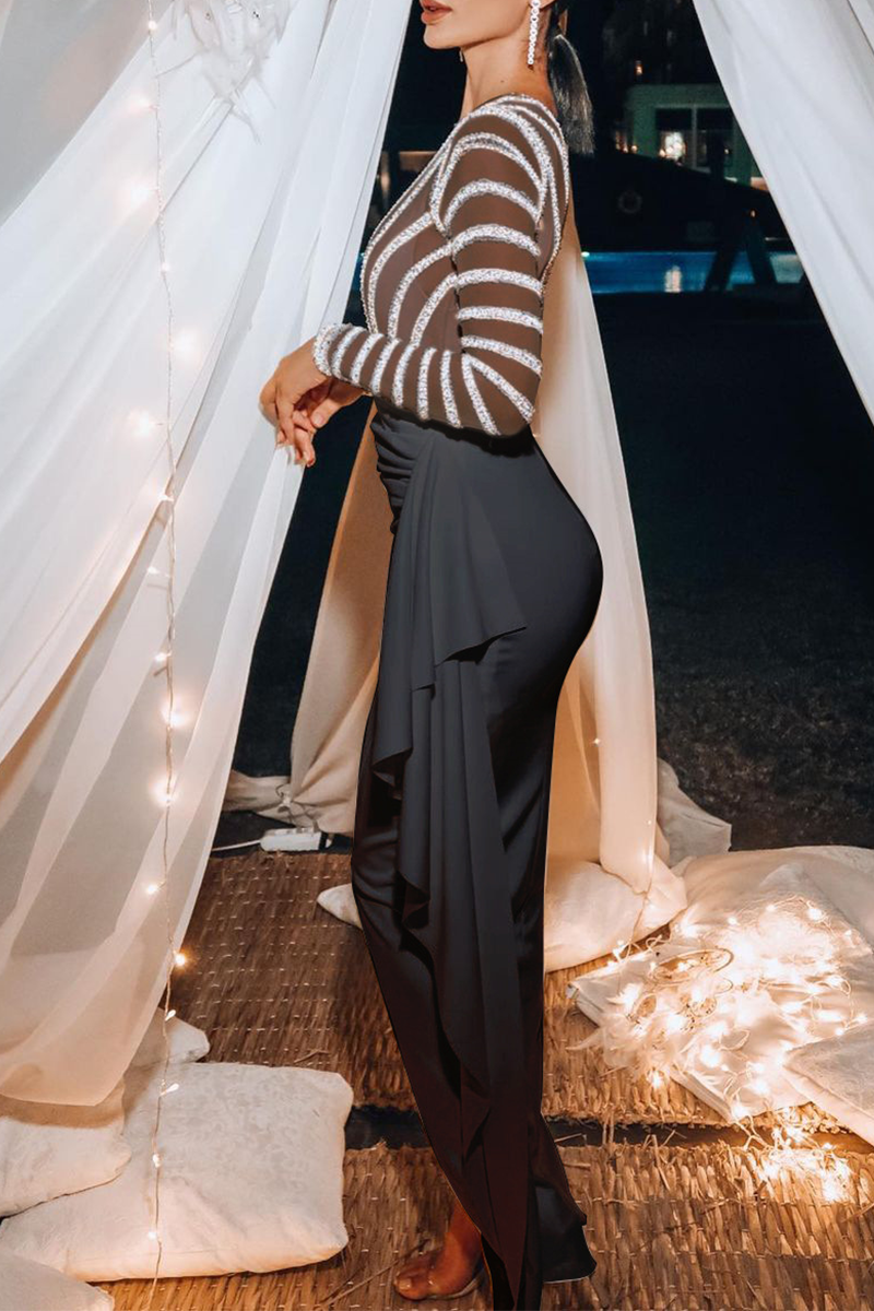 Elegant Solid See-through Asymmetrical O Neck Evening Dress Dresses(3 Colors)
