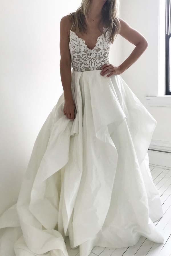 Elegant Straps Ivory Long Wedding Dress with Lace Top WD274