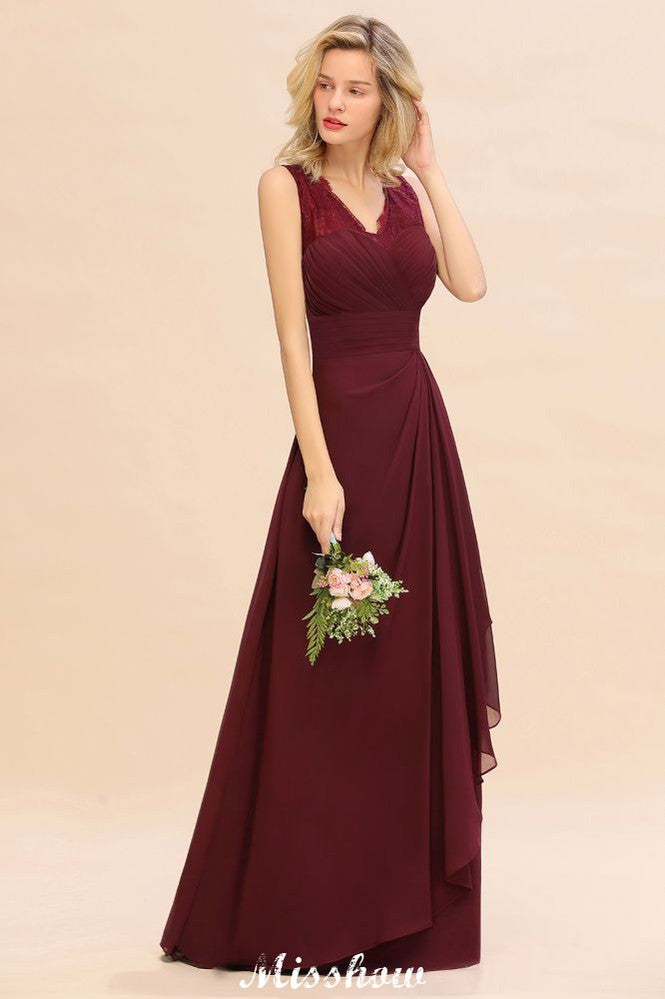 Elegant V-Neck aline Bridesmaid Dress Burgundy Backless Chiffon Party Dress