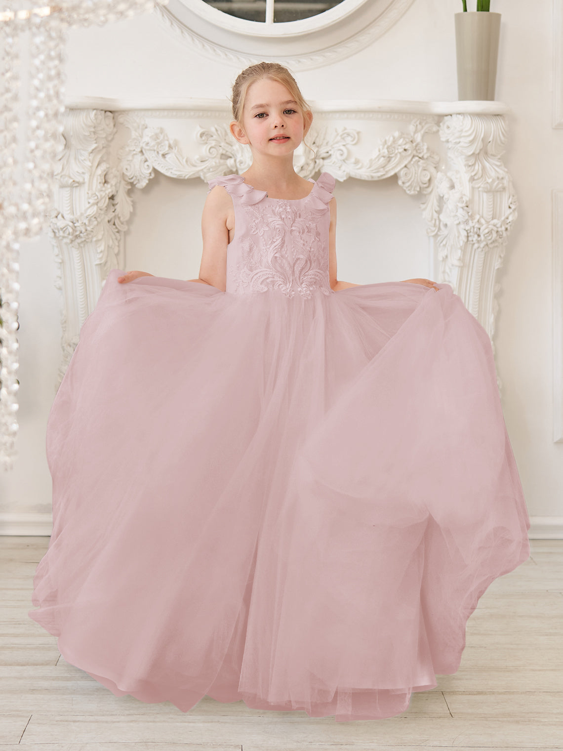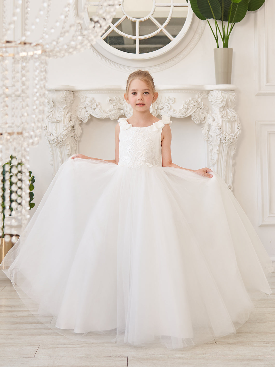 Elegant White Tulle Flower Girl Dress with Sweep Train